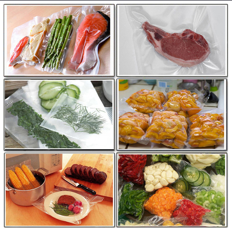2、將所需包裝的物品裝入包裝袋【塑料復(fù)合袋或鋁箔復(fù)合袋】內(nèi),放入真空室內(nèi),提起壓條,均勻的把袋口置于熱封架上排好,然后放下壓條。