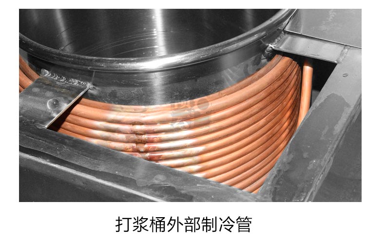 本設備采用304不銹鋼材質加工設計,在原高速/慢速打漿機的基礎上,將3P制冷壓縮機嵌入打漿機內,解決了高速/慢速肉丸打漿過程中因拍打破碎等工序引起升溫改變肉質難題,制冷效果顯著,產品一經推出,倍受肉制品加工商企客戶青睞。