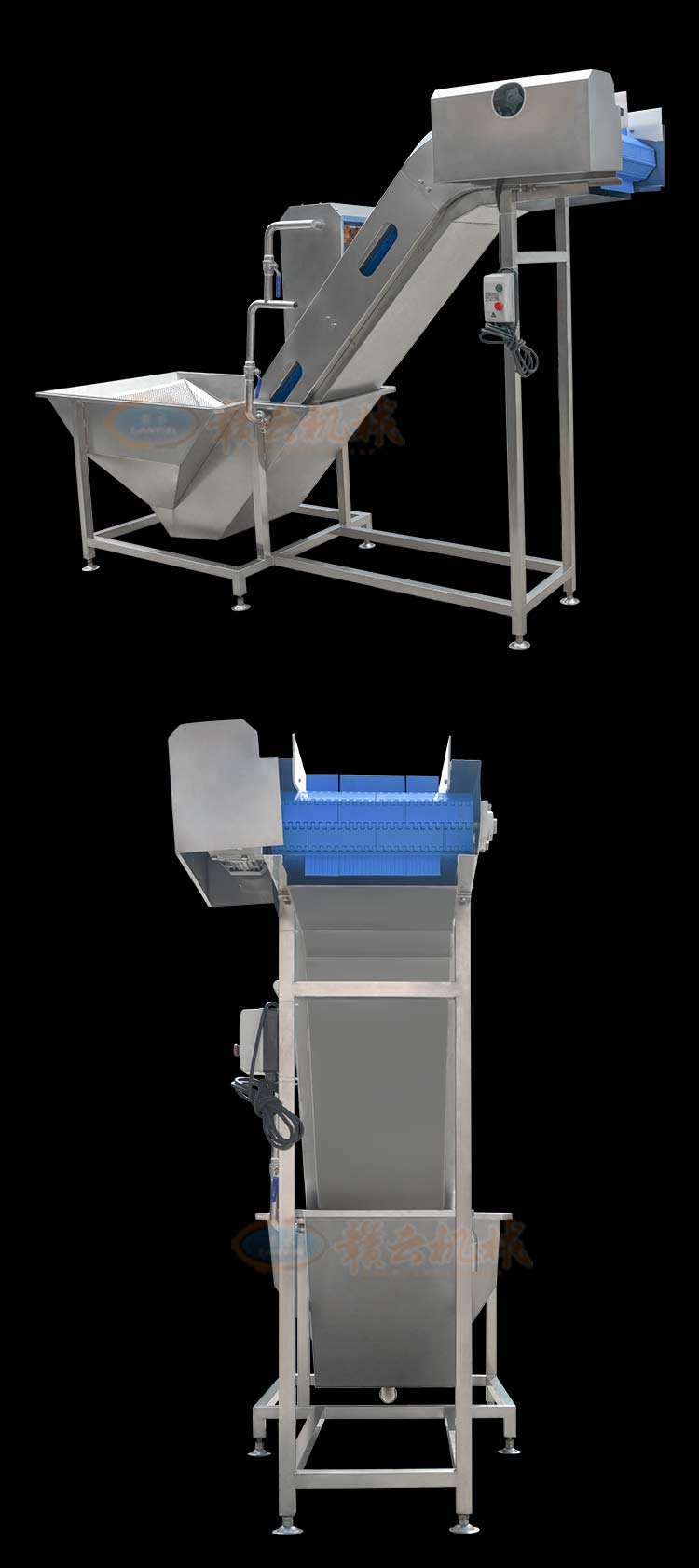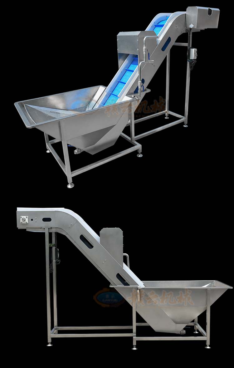本機主要起提升和輸送的作用,浸泡清洗機是由水箱和提升機組合而成的機械,物料先倒入水槽后浸泡,在由提升機進行提升給下一道工序。解決人工入料困難的問題;在流水生產線中,該設備通常和其他入料口要求高的設備搭配使用,滿足生產的自動化的需要。該機具有操作簡便、結構緊湊、造型美觀、維修方便等優點。