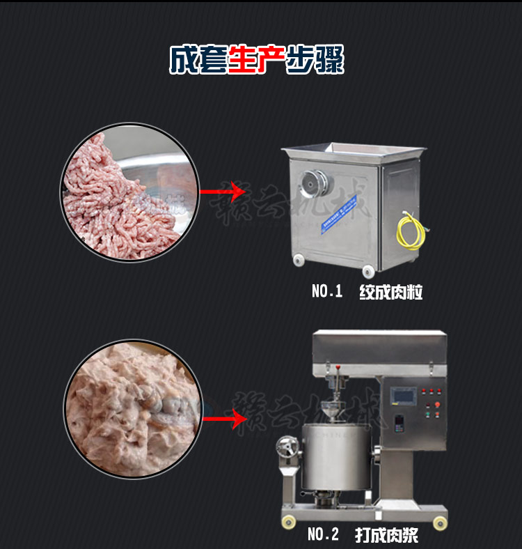 本套設備由52型絞肉機、180調(diào)速打漿機、雙速魚丸機(貢丸機或包心機)多樣化選擇,一臺就夠,熟化設備(3米定制水槽)需要產(chǎn)地面積:40-50平米供電需要:三相電可選設備:300采肉機,產(chǎn)量按工作8小時計算。如加上這臺設備可用來采新鮮魚肉,可做爽口魚丸,蝦丸等。