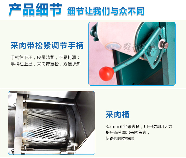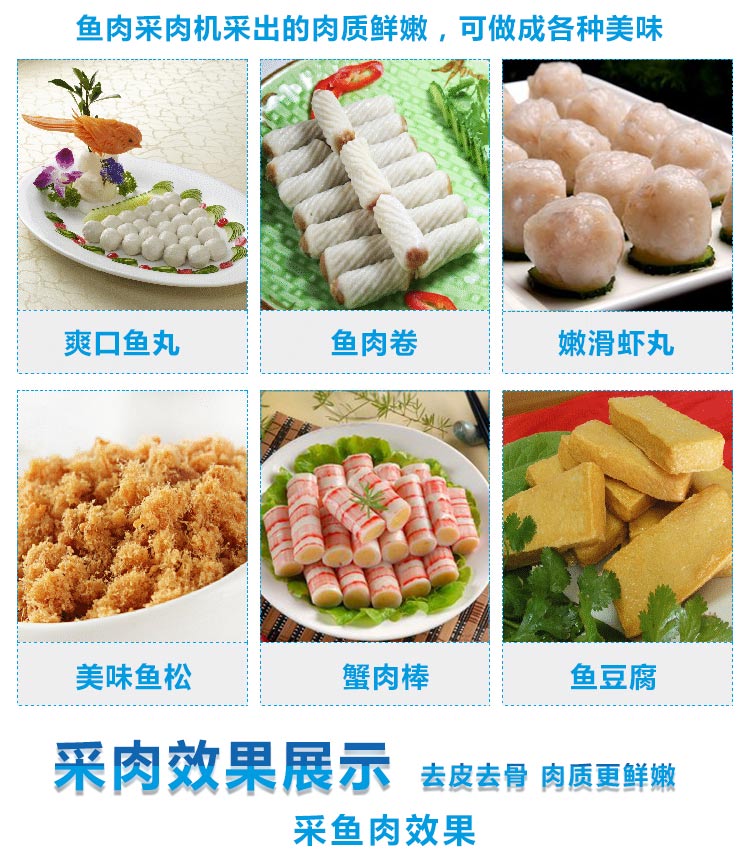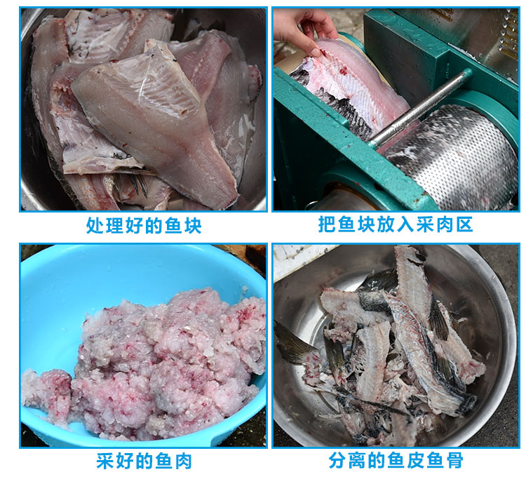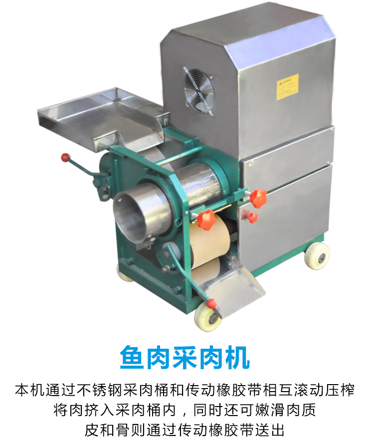 該機器除了可采淡水魚肉,還可采海魚肉、蝦、蟹、泥鰍等,比手工采肉效率更高,成本更低、干凈衛(wèi)生,是魚糜制品前期處理的設備之一。配套的還有魚糜精濾機,我廠生產(chǎn)的普通款魚肉采肉機有160型和200型兩種型號,全不銹鋼材質(zhì)的有200型、300型和350型;魚糜精濾機有100型、200型和300型三種型號。