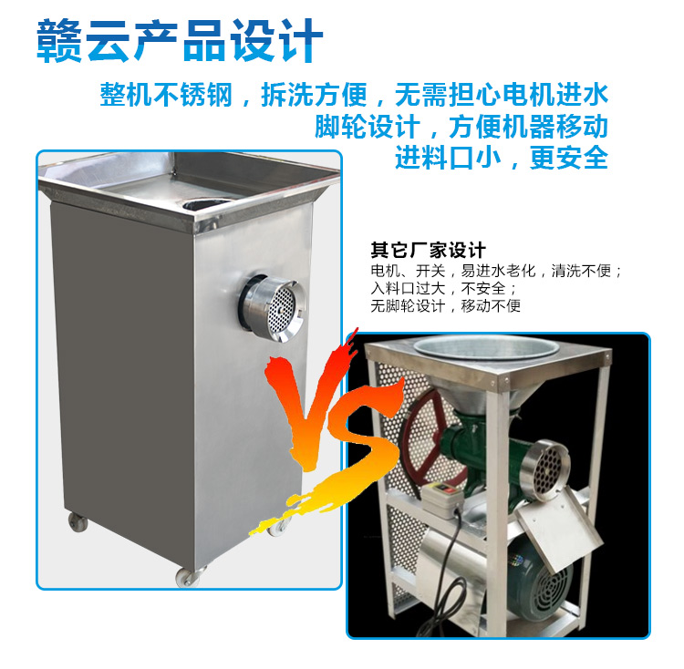這款32B型強力絞肉機采用不銹鋼材質加工精致而成,改傳統的鑄鐵絞肉機頭為不銹鋼絞肉機頭,使之接觸食品部位均為不銹鋼材質,不生銹,達到食品安全衛生要求。