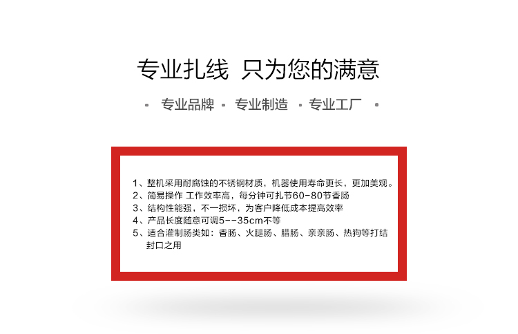 電動(dòng)打結(jié)機(jī),香腸打結(jié)機(jī),腸類自動(dòng)打結(jié)設(shè)備,冬季灌腸打結(jié)好設(shè)備,香腸自動(dòng)打結(jié)機(jī),采用不銹鋼材質(zhì)設(shè)計(jì),打結(jié)長(zhǎng)度5-35cm可自由調(diào)節(jié)。進(jìn)料口直接50mm.