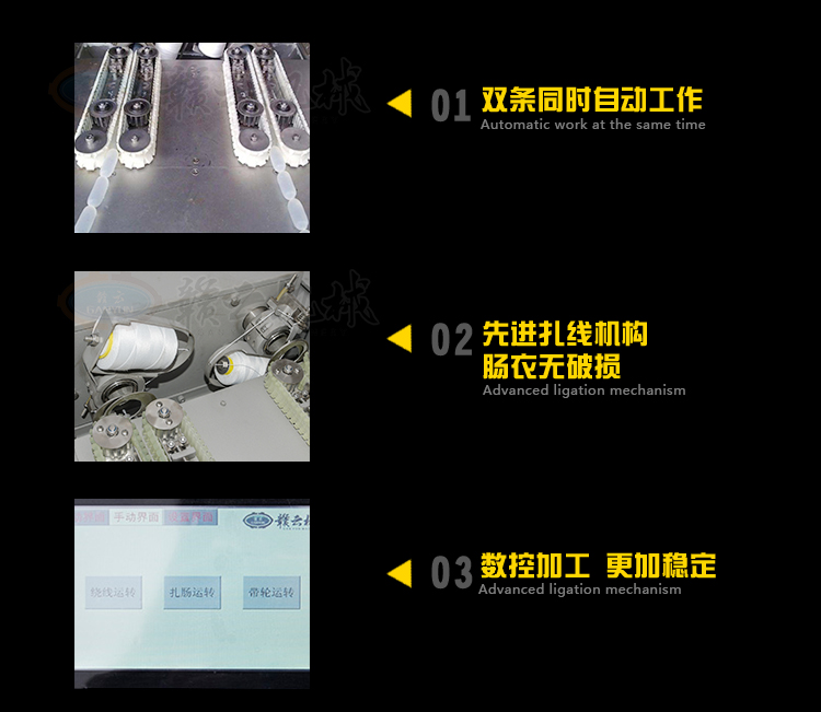 2、先進(jìn)的扎線機(jī)構(gòu),腸衣無破損。