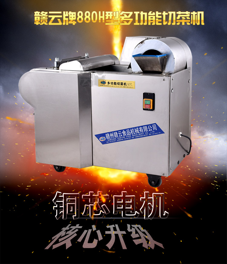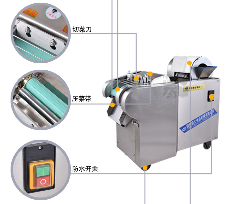 2015年新款加厚型切菜機是我廠經過多年的切菜實踐經驗和客戶反饋等綜合信息考慮設計而成的,比原來的880型切菜機加厚板材,并配用全銅芯超穩定型電機。保證產品質量的同時,使得產品外形更加美觀,更顯不銹鋼檔次。一小時可切600公斤蔬菜,切菜厚薄可調0-20mm,切片厚薄可調0-10mm,模擬手工切菜原理設計而成,采用輸送帶完美配合離心切片機構和豎刀切菜機構,運用手壓原理將切切成有規則的,間隙均勻的片、丁、絲、條等狀。