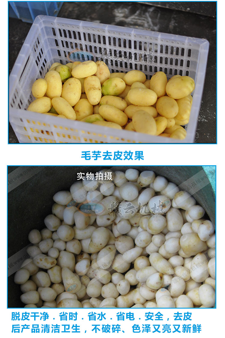 本系列毛芋土豆去皮機具有良好的防銹.防腐.耐磨損等特點.去皮快速,清潔衛生,可以脫毛芋頭皮,土豆(馬鈴薯)皮等,性能穩定操作簡便,安全,可確保去皮質量,且省電省水省時間 適合農產品加工單位及個體加工經營,脫皮后的芋子.土豆等,可以散裝或袋裝在各超市菜市場 分銷批另.產品名稱:毛芋土豆脫皮機