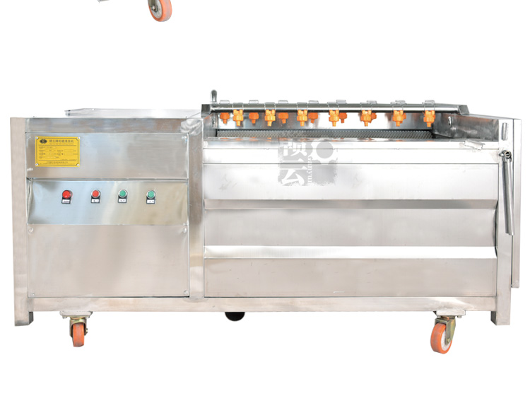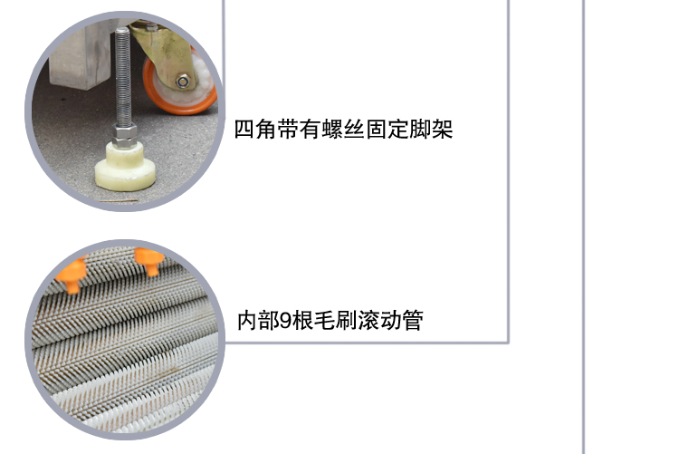 毛輥式連續自動清洗機采用食品級不銹鋼制造而成、堅固耐用,毛輥全部采用優質樹脂、韌性高、耐磨性好,從而達到洗潔凈高、節省勞力、節水。
