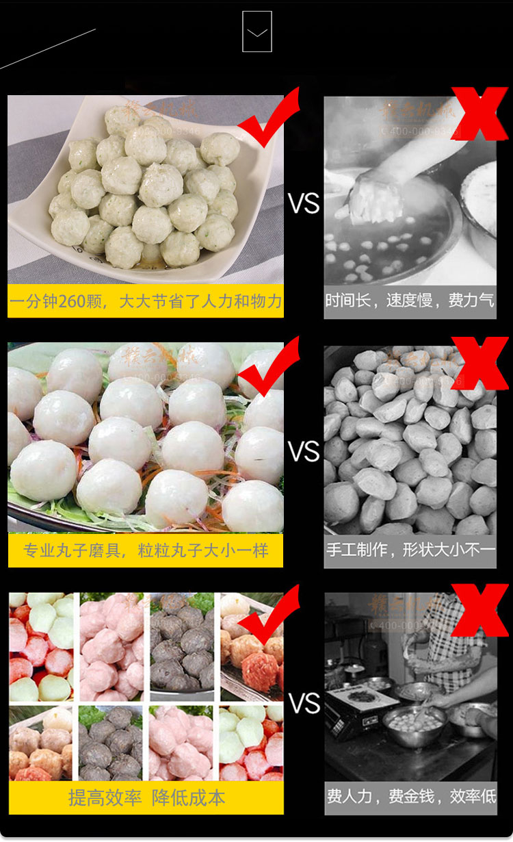 贛云推出這款快速肉丸成型機,每分鐘可成型300個實心小肉丸,這臺設備具有成型速度快、操作簡單,可做直徑15mm-28mm的丸子,丸子大小有模具控制,隨機配有三個模具,15mm、20mm和25mm,其他規格需定做。