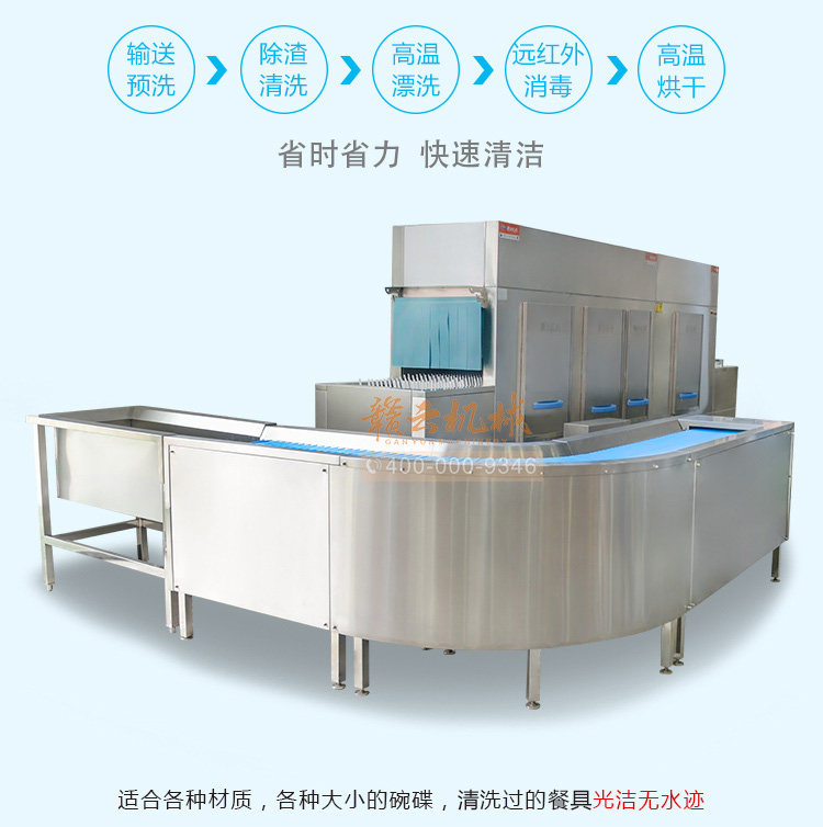 長龍式洗碗機(jī),集除渣、洗滌、漂洗、消毒、烘干設(shè)備。功能卓越,氣質(zhì)不凡,備受用戶青睞。 贛云秉承綠色環(huán)保的產(chǎn)品理念,各系列產(chǎn)品均選用特殊材料精工制作,解決了在高溫消毒、高溫烘干環(huán)境下,撥齒“變形、異味、微毒”的問題,真正使洗碗機(jī)行業(yè)在“長龍式遠(yuǎn)紅外高溫消毒、高溫烘干”領(lǐng)域不再是一句空話。