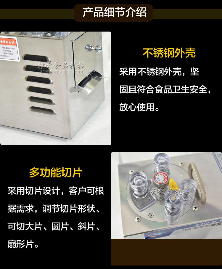 本機(jī)選用單相電機(jī)配套,采用高檔軸承,并安裝四把刀片在刀盤上,速比慢而切片功效高,切片厚薄可以調(diào)節(jié),廣泛適用于中藥房、藥店、中藥加工場等。本機(jī)具有體積少、效率高、操作簡便、精巧美觀,即省電又安全等特點。