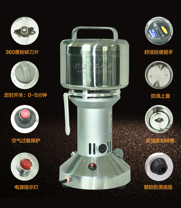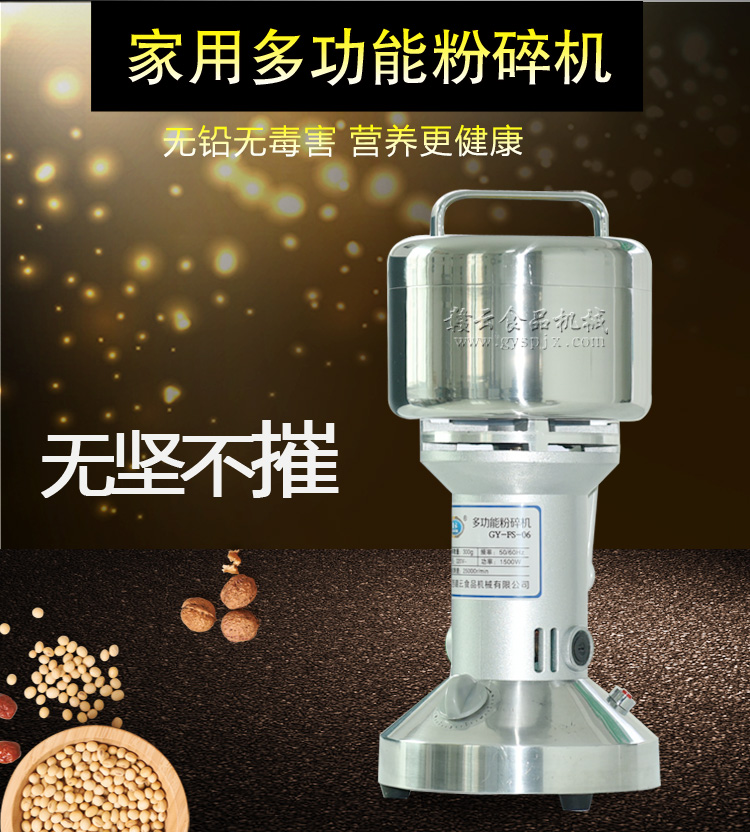 贛云系列多功能粉碎機(jī)采用純銅高速電機(jī)帶動粉碎刀片將物料快速打成粉末,可用于粉碎五谷、雜糧、田七、阿膠、白叁等,一般粉碎時間1-2分鐘即可,新款粉碎機(jī)改保險絲為空氣過載保護(hù)器,使用更安全,我廠提供的粉碎機(jī)有100克-2500克不同型號的多功能粉碎機(jī)。