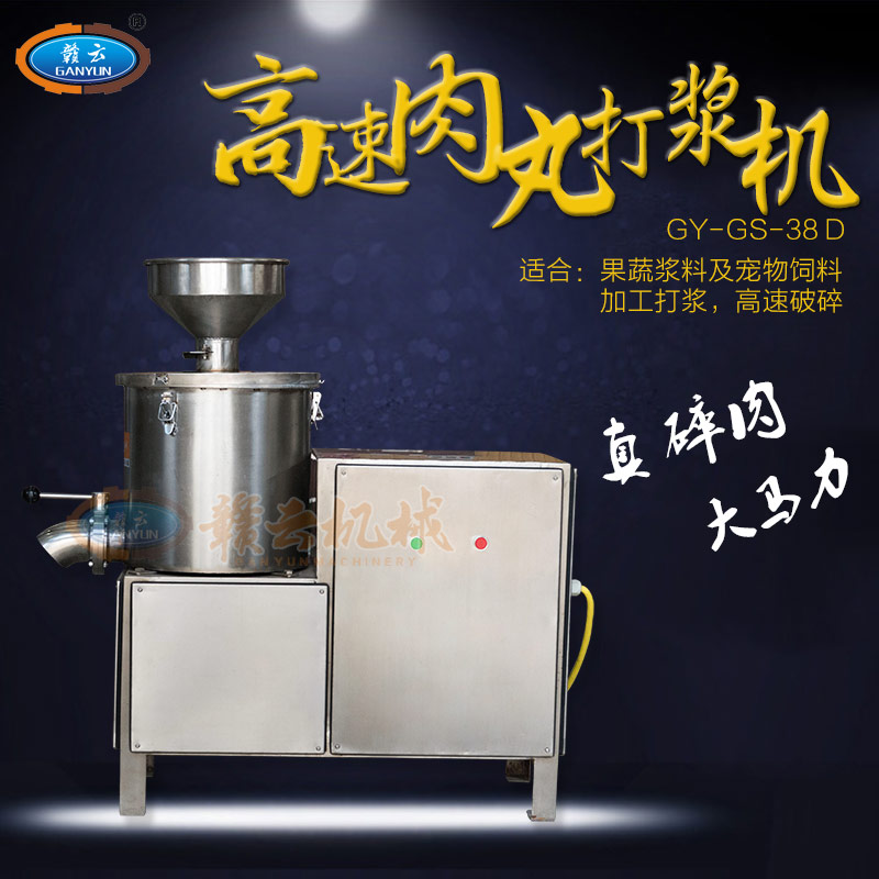 贛云牌流水式高速打漿機選用全不銹鋼材質設計制作,開機2-3分鐘即可完成打肉、配料,攪拌成漿。此款流水式高速打漿機針對流動性強肉漿的制作更方便,如稀釋肉漿的加工制作、果蔬漿,較稀的肉漿的制作,不論是從投料還是出料,贛云牌流水式高速肉丸打漿機都是更好的選擇。