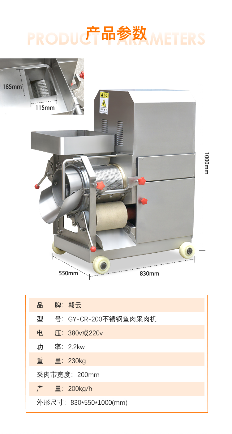 水產(chǎn)加工設(shè)備->魚肉加工設(shè)備->200型不銹鋼魚肉采肉機(jī)  | |||||||||