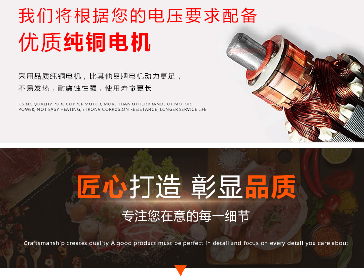 贛云牌全不銹鋼慢速魚丸、肉丸打漿機采用優質不銹鋼材質,通過大皮帶輪減速帶動打漿機刀片打漿,通過慢速拍打,使肉漿更具有彈性和韌性。適合魚丸、牛肉丸和貢丸的制漿之用。