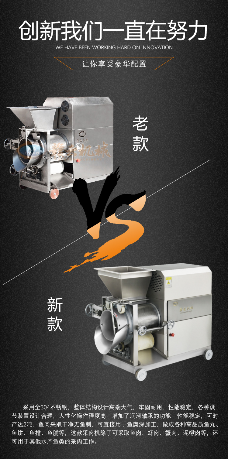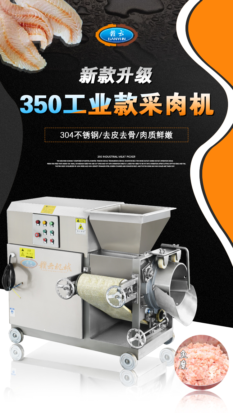 贛云牌新款350型魚肉采取機新品上市,采用全304不銹鋼材質,整體設計高端大氣,結構牢固。性能穩定,可時產達2噸,魚肉采取干凈無魚刺,可直接用于魚糜深加工,做成各種高品質魚丸、魚餅、魚排、魚脯等,這款采肉機除了可采取魚肉、蝦肉、蟹肉、泥鰍肉等,還可用于其他水產魚類的采肉工作。