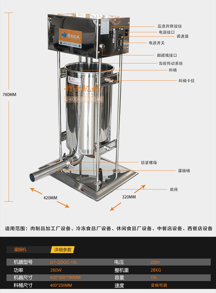 肉制品前處理->專用灌腸設(shè)備->電動(dòng)灌腸機(jī)15L  | |||||||