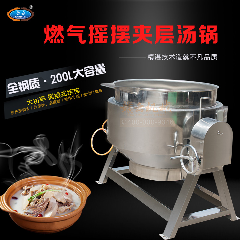 中央廚房設(shè)備->熱調(diào)理區(qū)設(shè)備->液化氣半鋼搖擺湯鍋  | |||||||