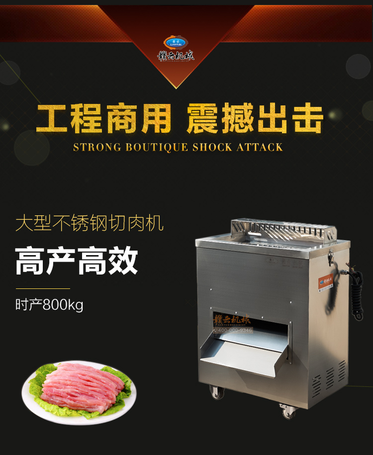 贛云2017款大型切肉機,工程款切肉片肉絲機,采用1.2mm304不銹鋼板材加工設計,配備3kw大功率純銅電機,380v工業用電,使得產品性能穩定,雙滾切刀設計,切肉效率高,雙規格切肉刀具組合,適合大眾需求。