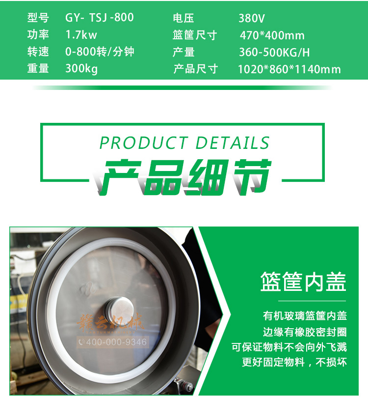 (2)低噪音。機臺工作時比較靜,打破目前市場上脫水機工業用的大噪音。