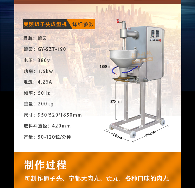 肉丸成型機(jī)械->實心肉丸機(jī)->190型變頻獅子頭機(jī) | |||||||