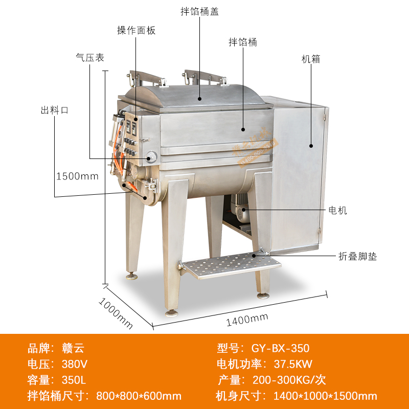 主頁-> 肉制品前處理->斬拌滾揉設備->350真空拌餡機