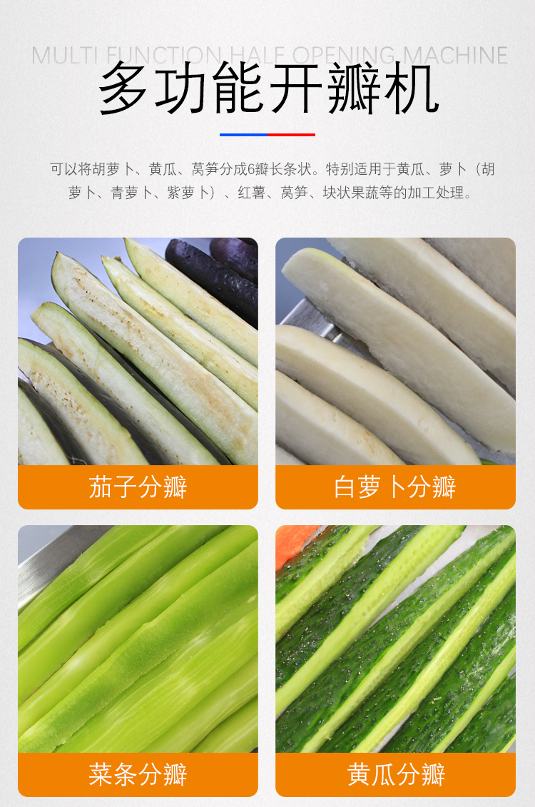 果蔬開(kāi)瓣機(jī)(4瓣)[視頻] 2000型多用切菜[視頻] 包菜去芯機(jī) 1000型多功能切[視頻] 880型切菜機(jī)(自動(dòng)型) 1000B型多功能[視頻] 880型多功能切菜機(jī)(加 660型多功能切菜[視頻] 660型多功能切菜[視頻]