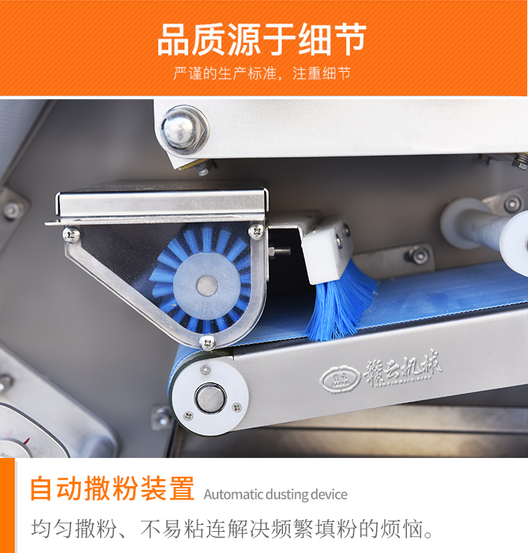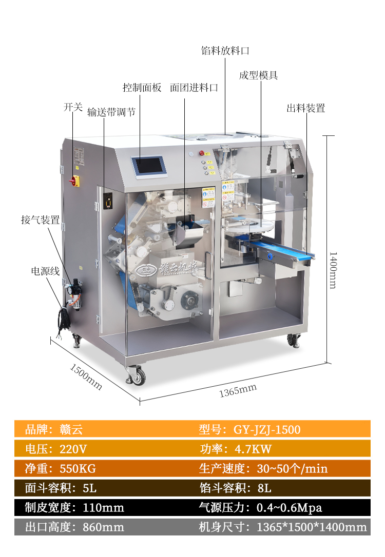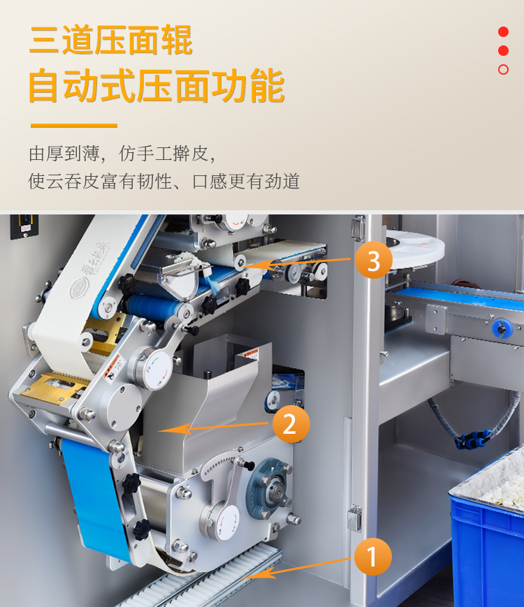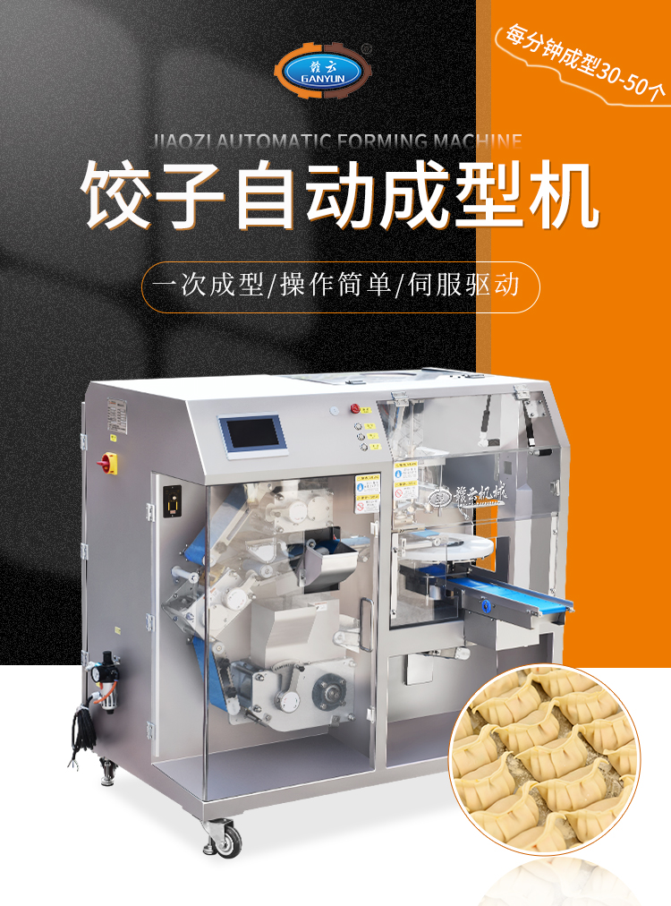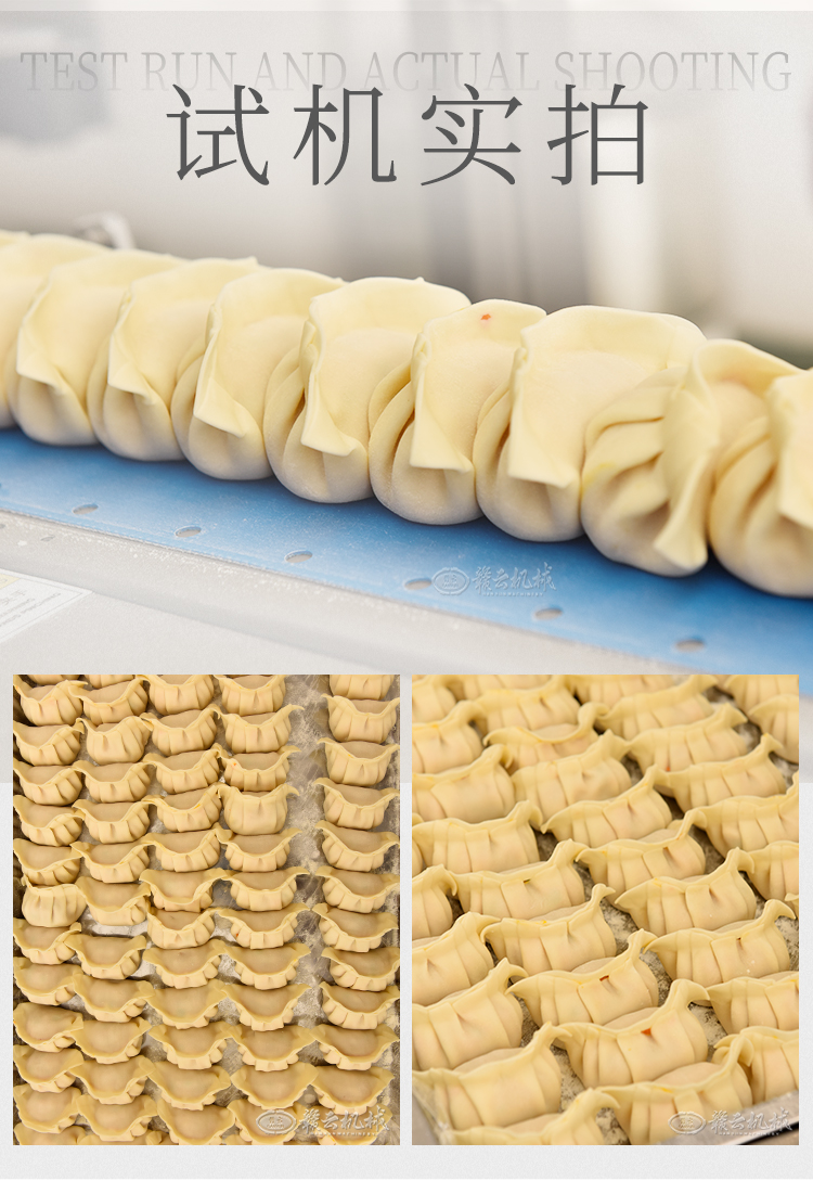 贛云機械生產銷售全自動餃子機,餃子機設備采用模擬人工壓餃子工藝,餃子包合美觀的成型特點,餃子機擁有三道壓面輥自動式壓面功能,由厚到薄,仿手工搟皮,做出的餃子皮富有韌性、口感勁道,花邊餃子機使用定量供料原理,生產時只需將面團與餡料放入進料口,開機即可自動生產出餃子。