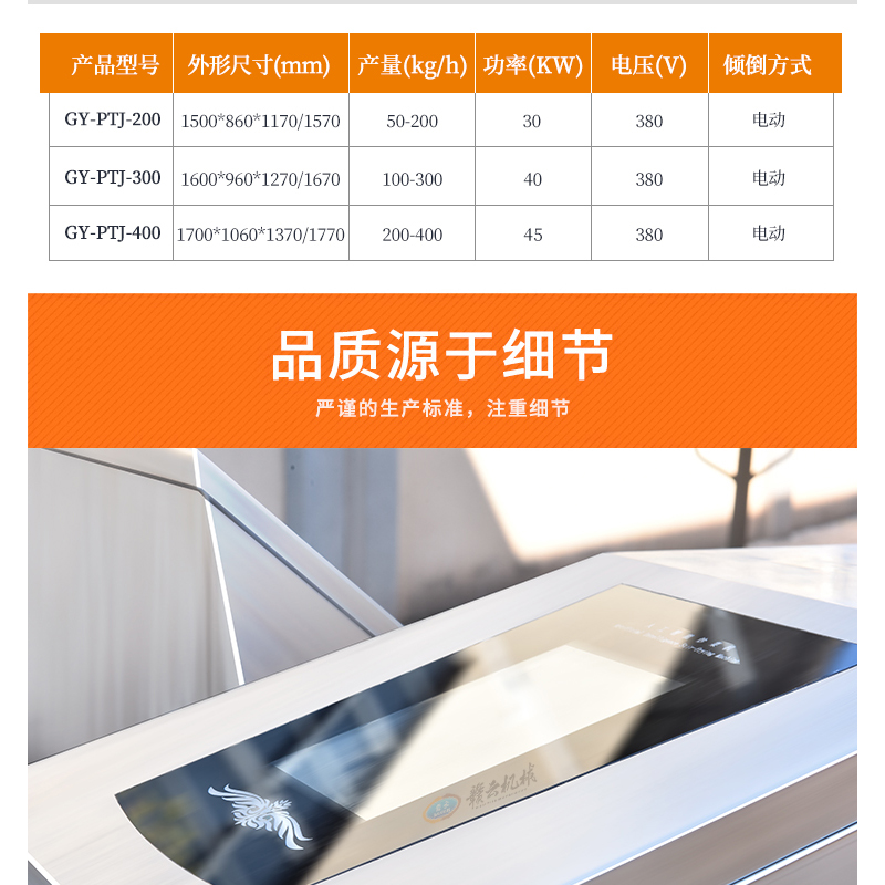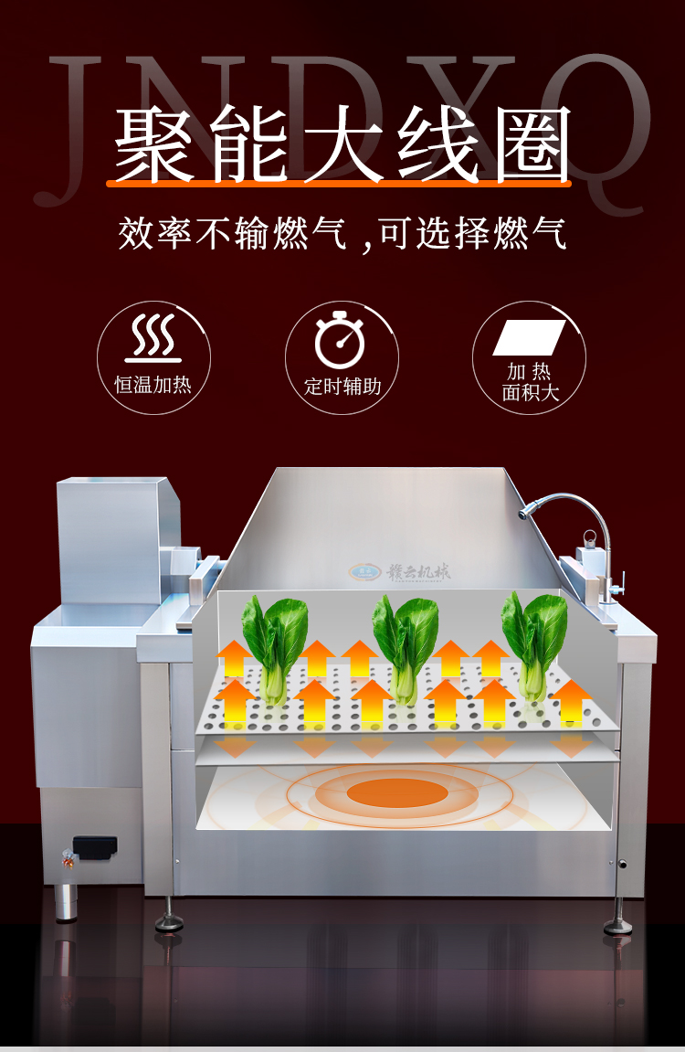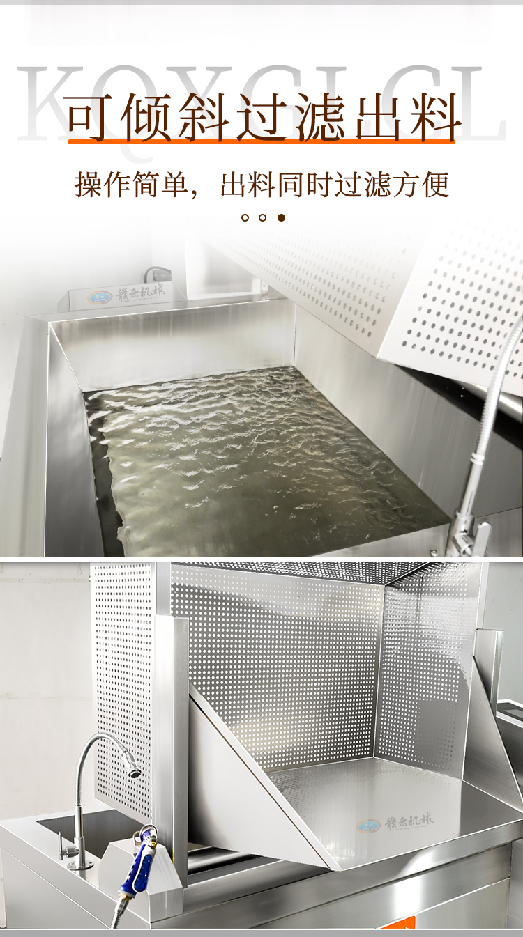 蔬菜漂燙機采用食品級不銹鋼材質打造而成,擁有400L大容量鍋體,物料鍋體整體可翻轉方便出料,配備沖洗槍和萬向水龍頭,底部加熱使用加大聚能線圈,讓整體加熱更均勻,設計的防水智能控制面板可以操作精準定時溫控、出料、自動濾水等,整體操作便捷,簡單易上手。