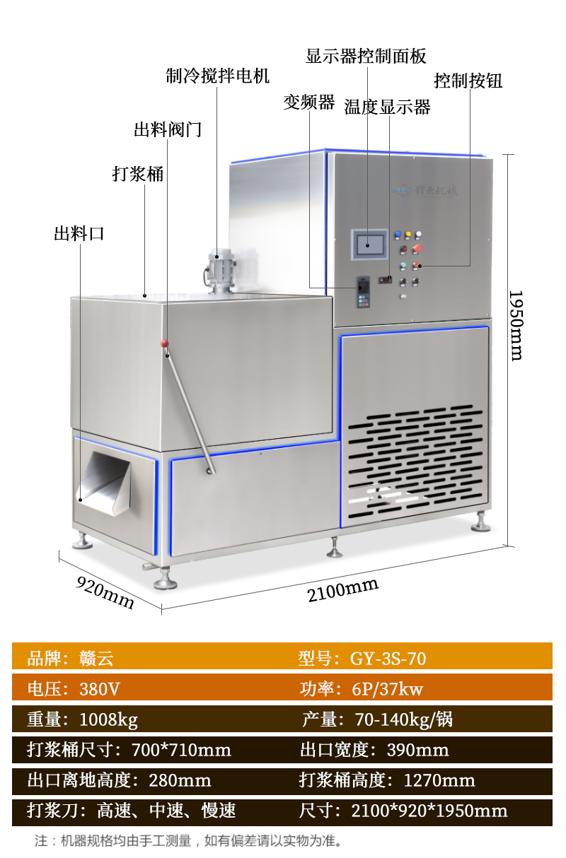 肉丸打漿機(jī)械->調(diào)速打漿機(jī)->三速制冷打漿機(jī)(70桶)  | |||||||
