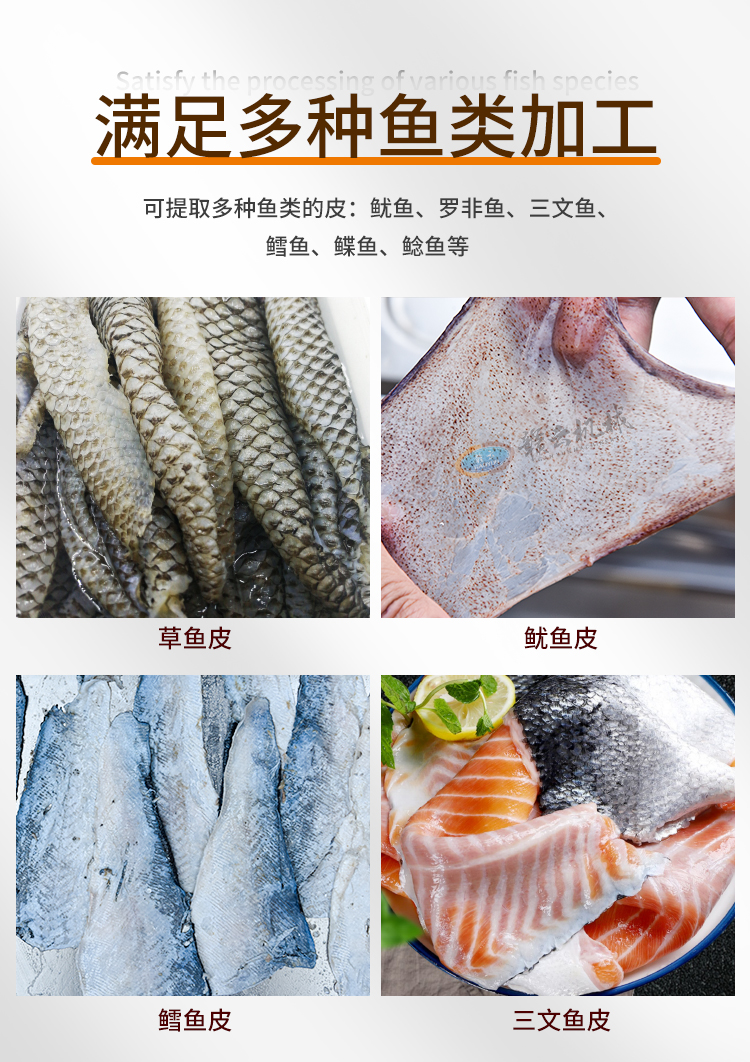 適用于多種魚類的魚皮提取,不傷魚肉,魚皮完整。