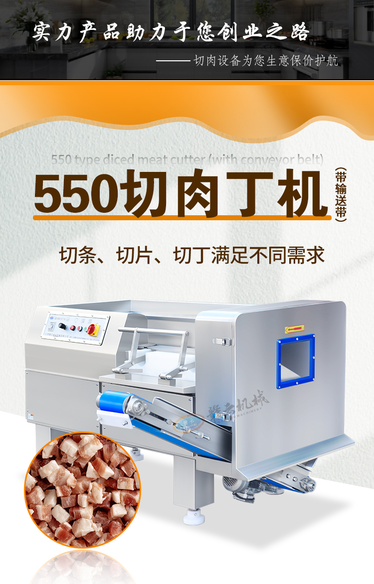 主頁-> 肉制品前處理->切肉機->550切肉丁機(帶輸送帶)