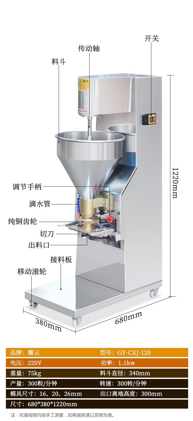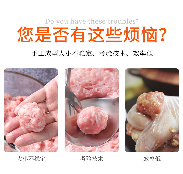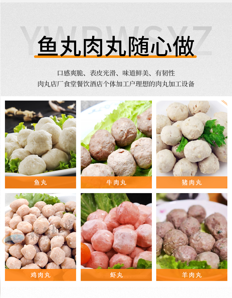 用于高效成型各種肉丸、魚丸、牛肉丸、蝦丸、素丸、豬肉丸、羊肉丸、雞肉丸等,形狀統一效果好。