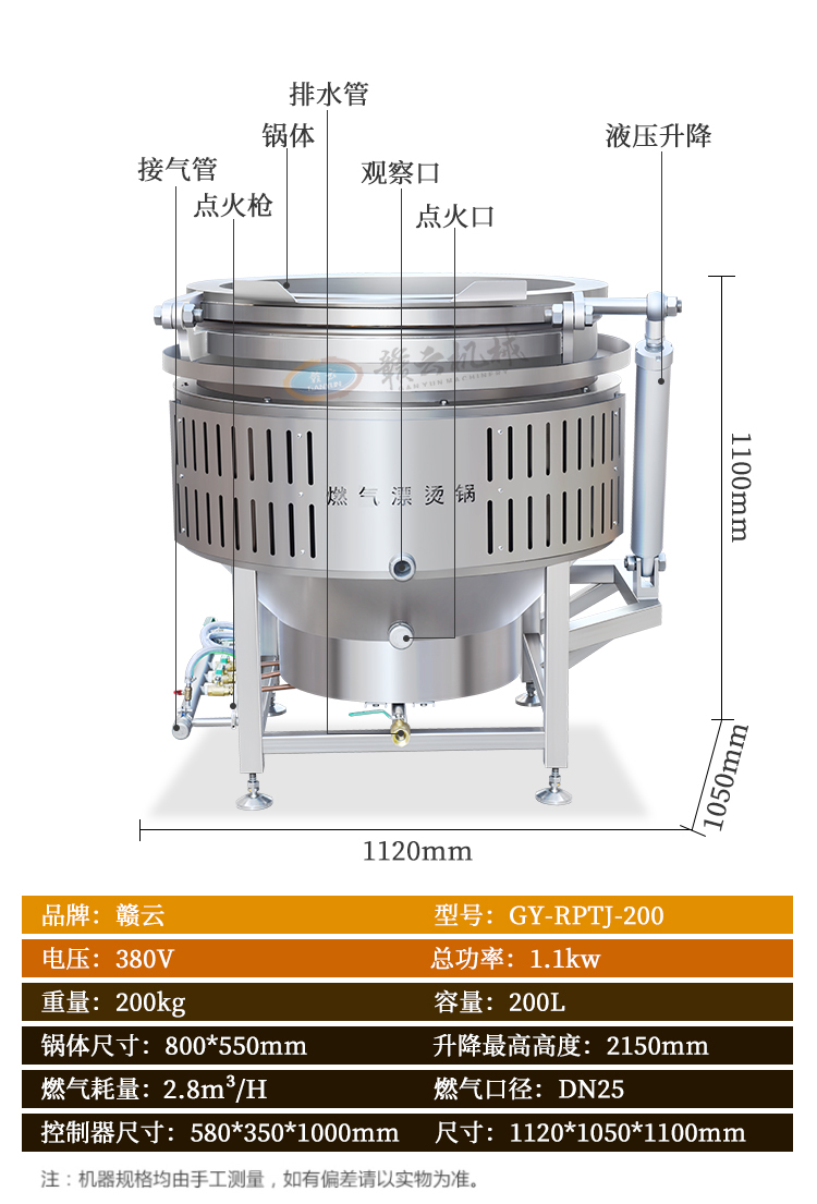 中央廚房設(shè)備->熱調(diào)理區(qū)設(shè)備->200L燃?xì)馄癄C鍋  | |||||||