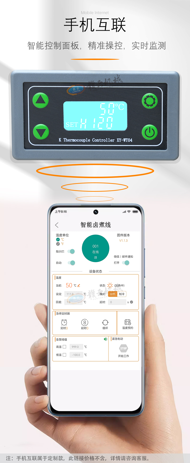 適用于各種肉丸的定型和熟化、肉類果蔬的熬煮鹵燉,連通手機,實現智能互聯。