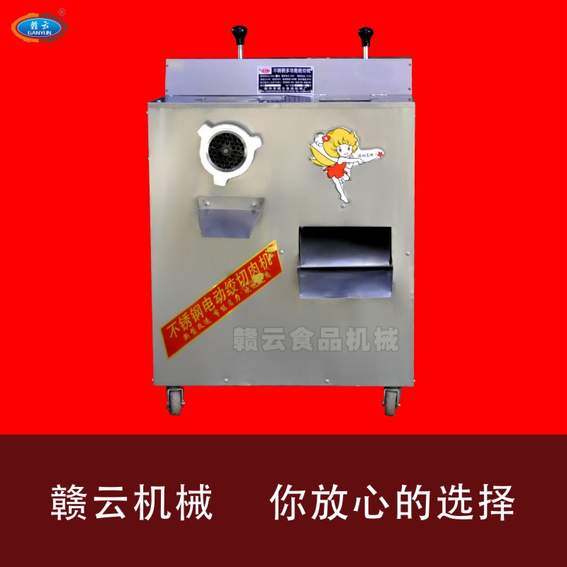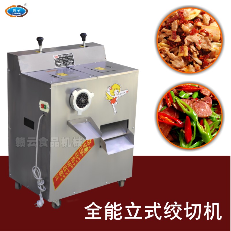 立式絞切兩用機切肉、絞肉、灌腸三大功能集于一身,具備切肉機、灌腸機和絞肉機各自的特點。省電耐用,方便快捷。具有結構緊湊,外型美觀,操作簡便,效率高,耗電少,清潔保養容易,安全衛生等特點。是賓館、酒家、肉類加工場,工廠、部隊、機關食堂等單位加工無骨肉類的理想加工機械。