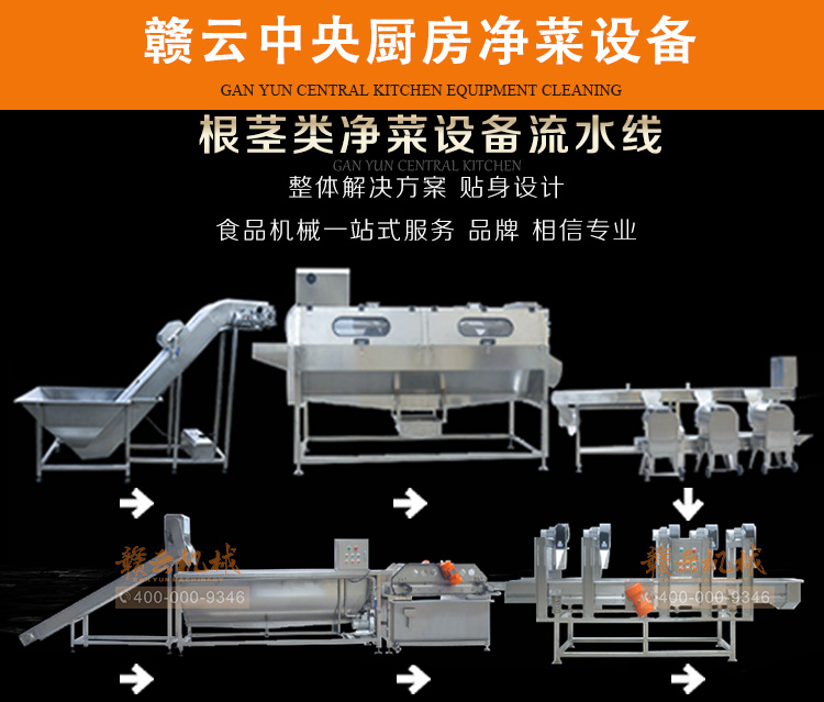 隨著中央廚房的興起(配餐配送中心),越來越多商家,食堂承包商需要進行大批量果蔬菜處理,清洗,切菜往往是一個費時費力的工作,所以很多商家來贛云食品機械咨詢果蔬清洗機,切菜機事項,其實可以把這些機器進行組合成一條集果蔬挑選,清洗,切割的完整流水線,這樣就能加快我們果蔬菜的生產處理效率!下面就給各位介紹下我們的凈菜加工機器。