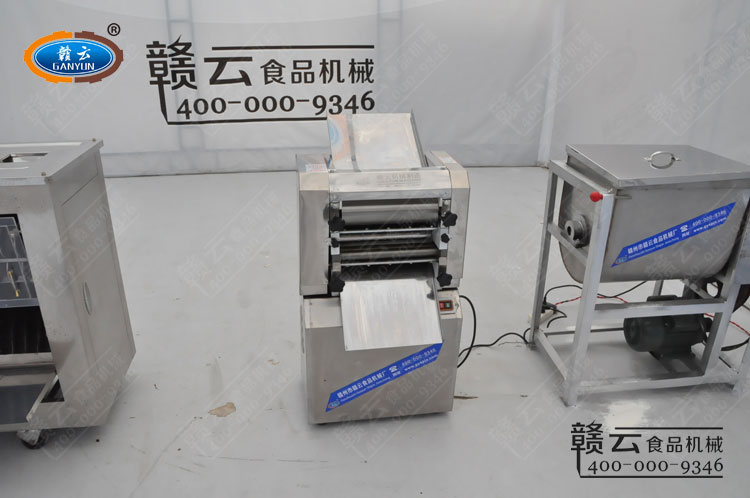 立式壓面機壓面(壓面過程不斷加入干面粉)