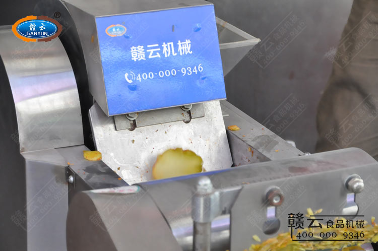贛云工作人員演示多功能切菜機的切菜效果厚薄調節-調試客戶所需要求厚薄。