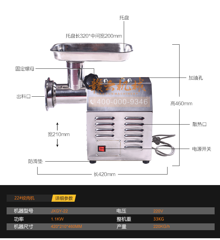 小型絞肉機適用于任何酒店、飯店、食堂、餐廳等。有不同規格的立式、臺式機型,省電省電,經久耐用,方便快捷,電動絞肉機,外形美觀,效率高,功耗低。同時,價格低廠家直銷的價格,可靠的質量,先進的高級不銹鋼,經久耐用,可長時間使用,絞肉餡效果好,性能穩定,采用進口的銅芯電機,人性化設計,安全可靠,不僅有設計安全的裝置,并且在絞肉的時候配有與任何肉類可以攪拌攪拌軸,無任何不安全因素,可以按照工藝要求切成顆粒或肉泥,便于和其他輔料混合,鮮肉絞肉機器滿足不同肉制品的需要,小型絞肉機具有操作簡單,價格低,質量好。贛云食品機械為您提供各自肉制品加工設備,歡迎您前來了解。