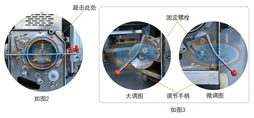 12、機器采肉不干凈,說明采肉帶比較松需調節采肉帶緊度。調節把手并固定如圖3。
