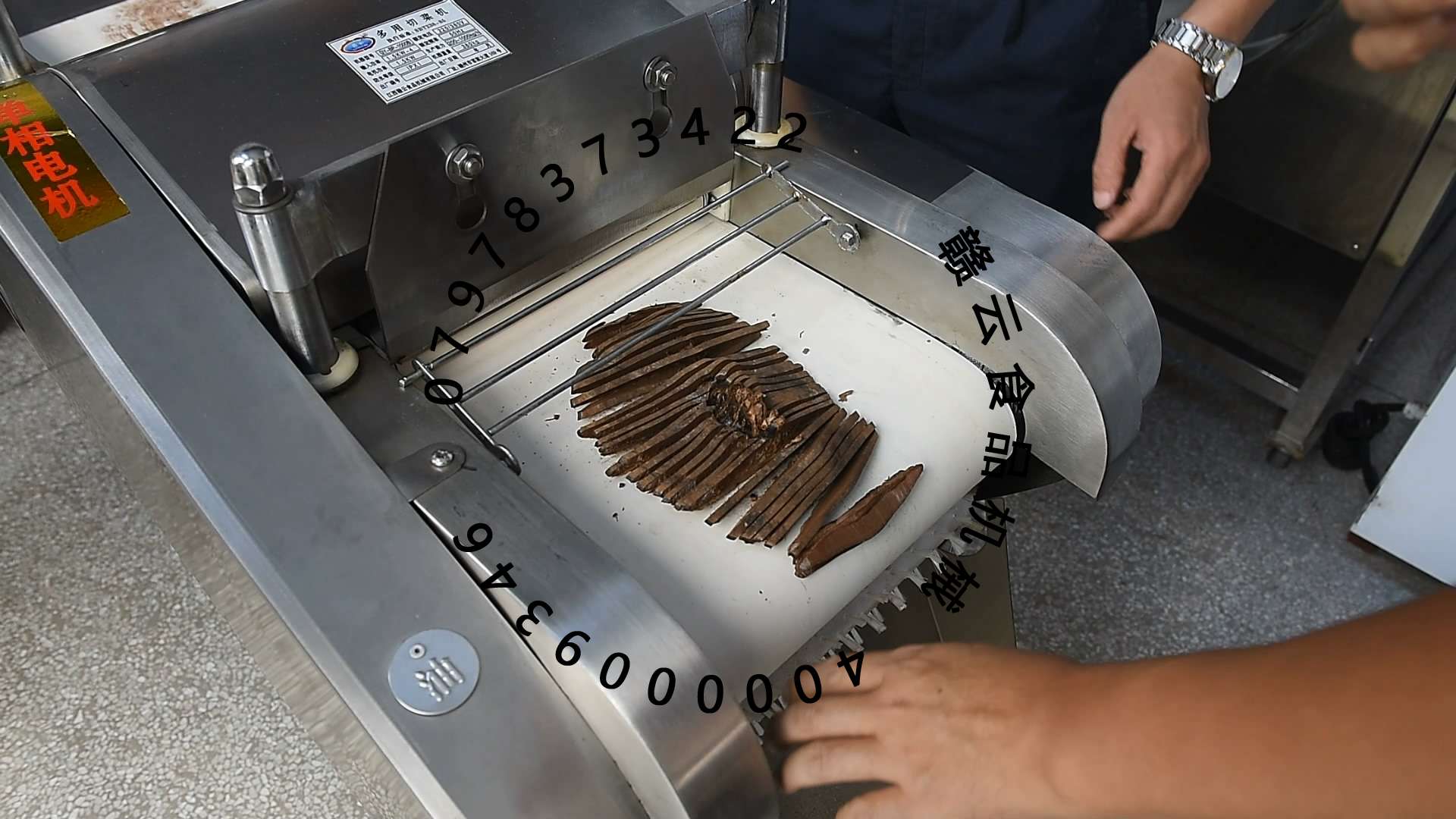 贛云1000B切菜機的設計完美契合靈芝切片的工作 切片完整 工作效率高 客戶親自上門試機驗證效果 以下是贛云1000B切菜機切靈芝的效果圖 隨便附上切靈芝視頻