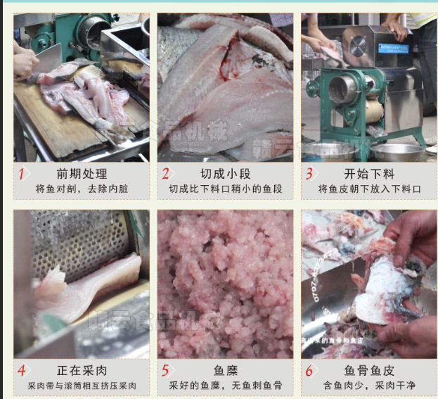 去刺是使用采肉機將魚體皮骨除掉而把魚肉分離出來。國內使用較多的是滾筒式采肉機。