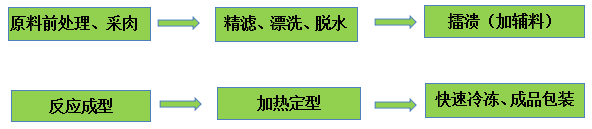 成型操作要與斬拌操作連接進行,兩者之間不能長時間間隔,否則打漿后的魚糜在室溫下放置會因凝膠化現(xiàn)象而失去粘性和塑性而無法成型。成型溫度一般在50℃左右反應10min。